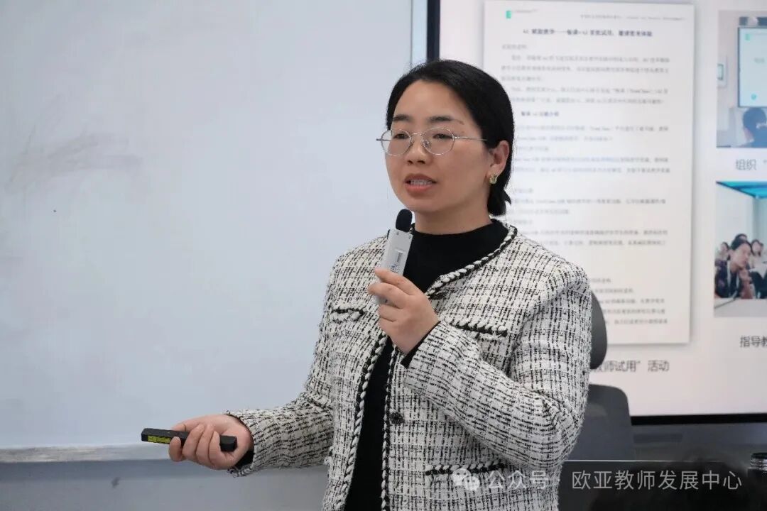 活动伊始,教师发展中心副主任许燕燕老师介绍了在学校价值观办学理念和“以雇主为导向、以学生为中心”(ESC)教育理念引导下,教师发展中心积极探索数智时代教育教学变革,通过系统设计AI赋能教师培养计划、组建AI教学社群及搭建交流共享平台,帮助教师能够更好地迎接AI时代的机遇和挑战。