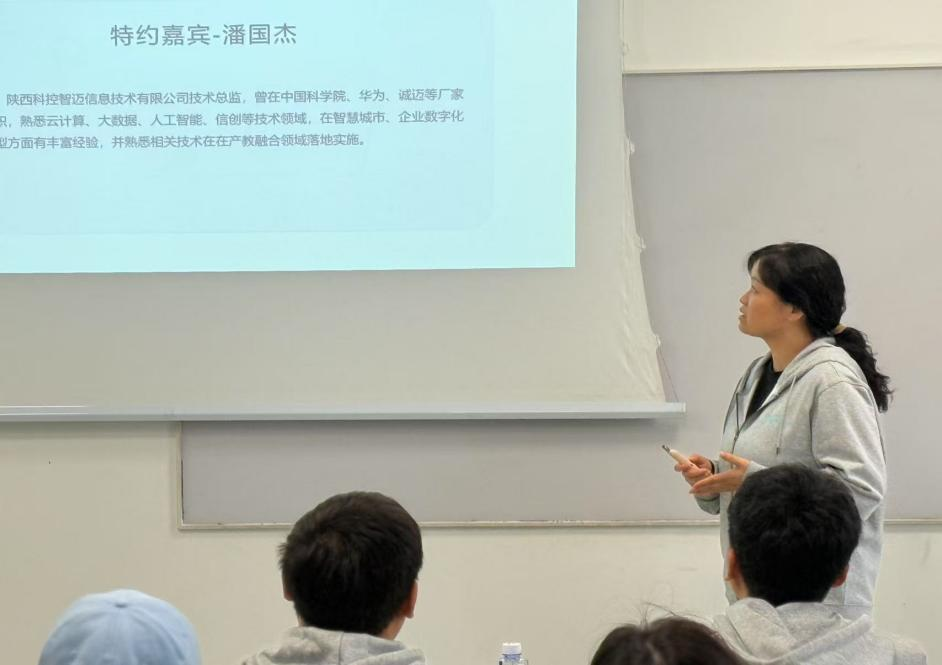 陕西科控智迈信息技术有限公司技术总监潘国杰作为企方特邀嘉宾,立足数字经济与AI+产业发展趋势,深入解读行业未来发展前景。潘总监指出,当前产业已迈入规模化发展新阶段,专业人才需求持续攀升,为广大学子提供了广阔的就业与发展空间。企业将充分发挥产业资源优势,将前沿技术与真实项目深度融入定制班人才培养全过程,与校方携手共育实战型专业人才,为学员搭建高质量发展平台。同时,他寄语全体学生珍惜实训机遇,在实践中强化实操能力、锤炼职业素养与团队协作精神,为未来职业发展筑牢根基。